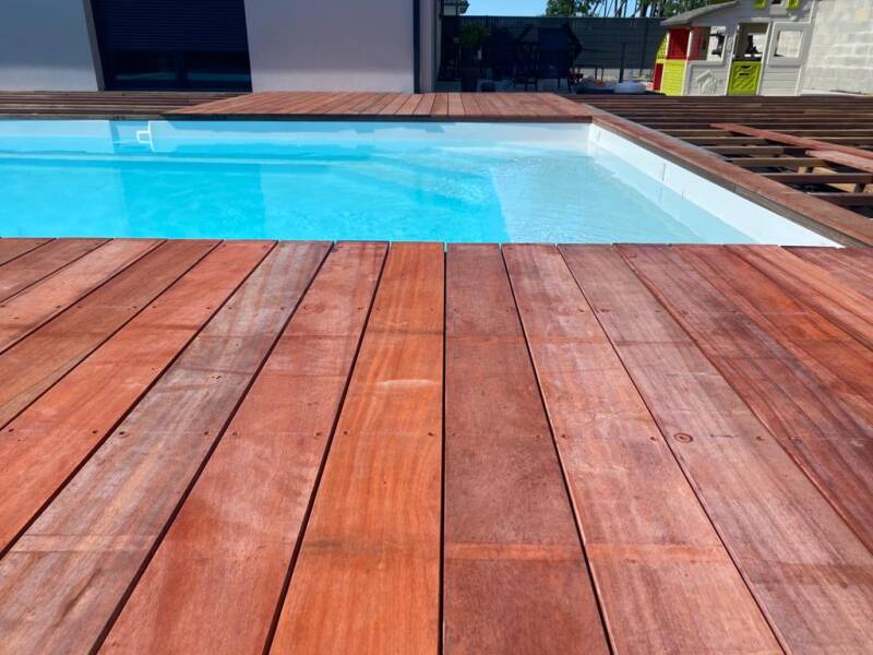 Intégration à la terrasse d'un coffre de volet de piscine immergé